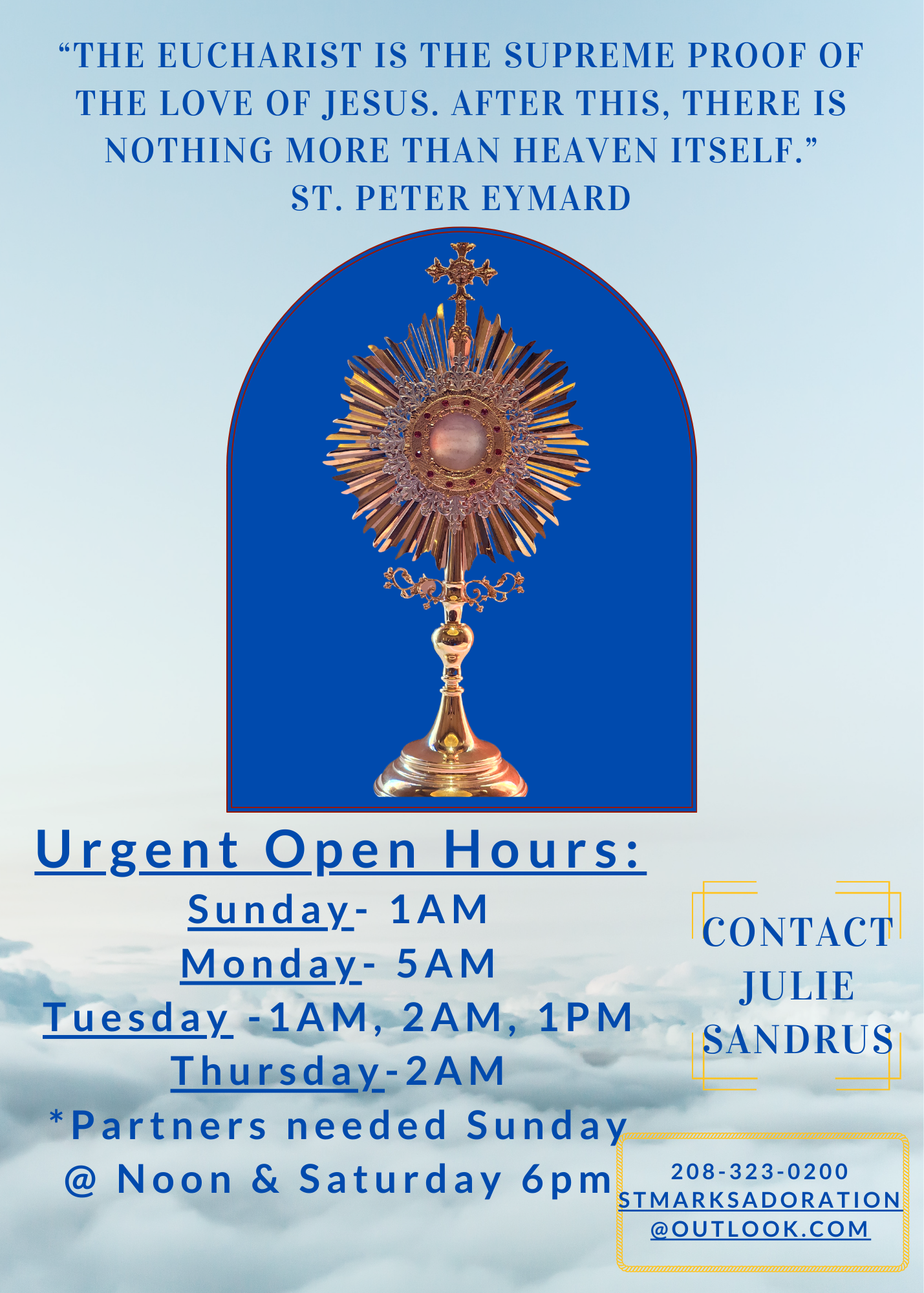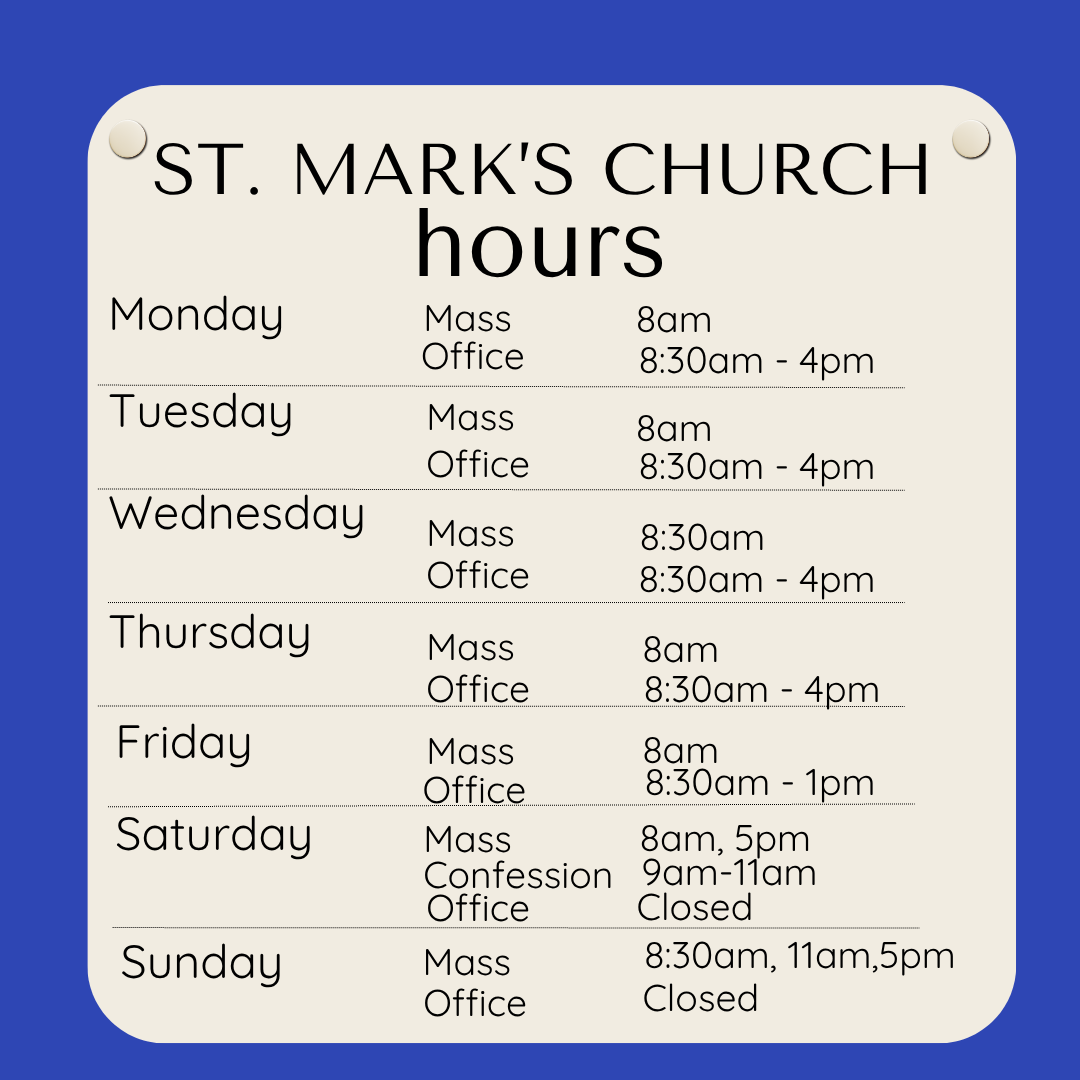 Feel free to attend any of our Masses and be sure to say hello, we look forward to meeting you!