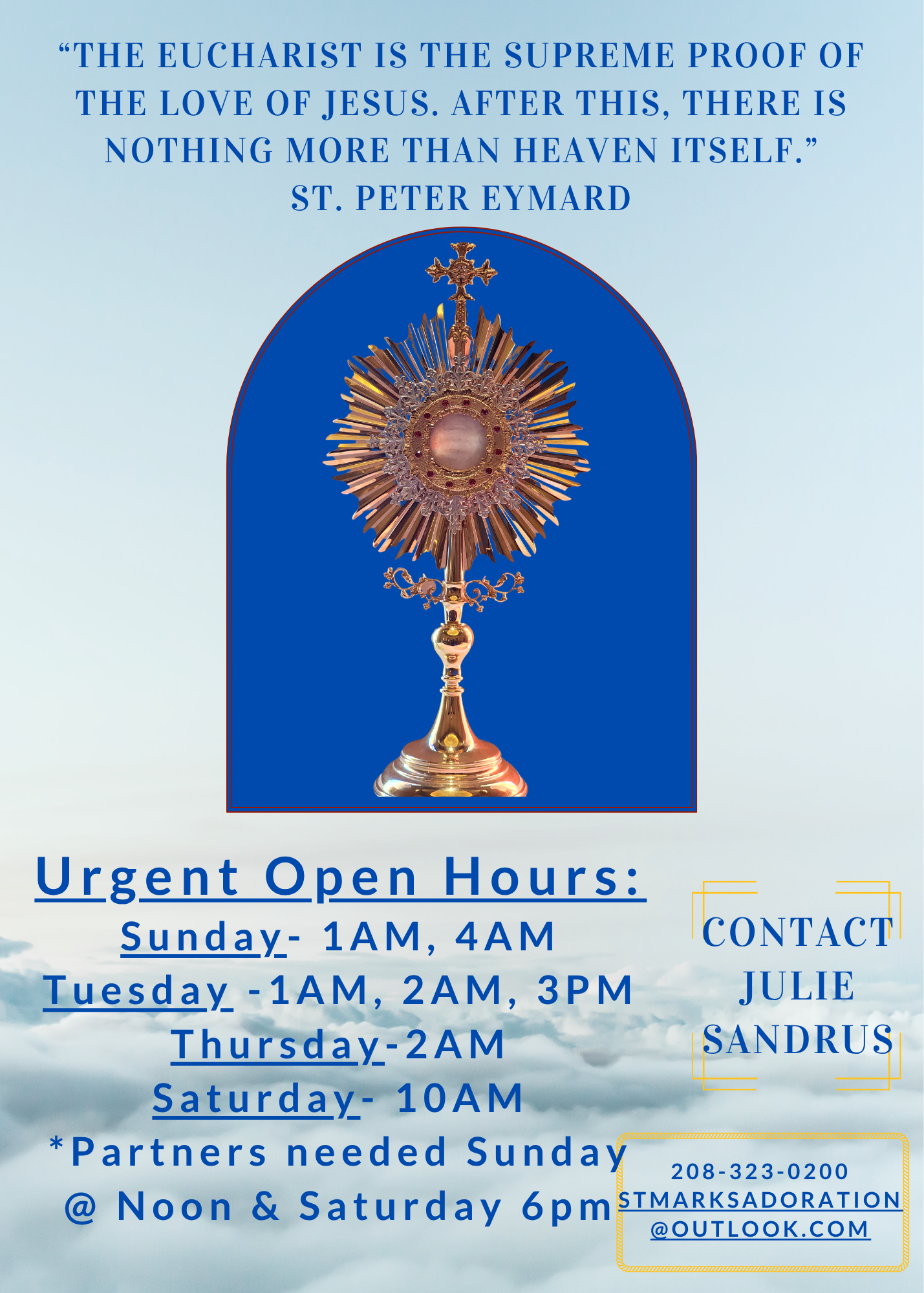 Whether you are new to Boise, a visitor, or a long-time parishioner, we warmly welcome you to join us for Mass.