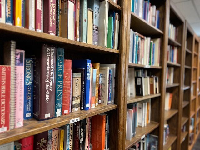 San Marcos cuenta con una biblioteca de préstamo llena de recursos en diversos formatos. Todos están invitados a visitar la biblioteca durante el horario de oficina (o con cita previa) para sacar prestado un libro, un DVD, un casete o una película.
